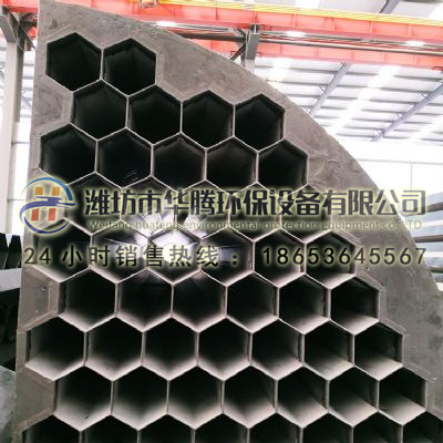 導(dǎo)電玻璃鋼陽極管主要應(yīng)用于濕式靜電除塵器、電捕焦油器等除塵除霧設(shè)備的陽極模塊。用于濕式電除塵器的導(dǎo)電玻璃鋼陽極管多為正六邊形規(guī)格,管內(nèi)切圓直徑350mm~360mm,管長可達6米,管壁厚約3mm。濕電陽極管模塊由若干根正六邊形管組合在一起組成沉淀極。